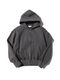 日本に1台しか無い、36G裏毛機で編立てることで、今までにはない唯一無二の素材を実現。中糸に、ナイロン糸をブレンドし独特のストレッチ性ともっちり感を表現。ハイゲージと相まって独特な光沢感がある素材です。リブ周りは全てブラウジング縫製により、たるみのあるデザインに。光沢感のある生地と相反する、リラックスなディテールを付けております。製品工程でタンブラー乾燥をすることで洗濯後の縮みなどがより無いように仕上げております。ピグメントダイという特殊技法で染めており、色ムラが出やすく奥行きのある色目で仕上がります。着込むことで経年変化が起こり、高級素材と相反したヴィンテージ加工となります。程よいルーズ感の定番フーディー。アームホール、身幅から、フードまで全てのパーツを計算し、パターンを引くことで、生地のポテンシャルを最大限に生かしております。丸みのあるボックスシルエットを採用しているので、レイヤードにも向いております。天巾を調整しフードがより立つように設計しております。