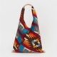 ファブリックには、ペンドルトンの象徴的なパターン「Harding」と「Rio Rancho」の2種類を採用。「Harding」は、1923年に大統領夫人へカユース族とウマティラ族の指導者が贈り物としてチーフ・ジョセフ柄をベースに柔らかな色合いでリデザインされたもので、「Rio Rancho」は、ニューメキシコ州リオ・ランチョの景観を称えた温かみのある色使いが特徴で、平原とグラマ草の大胆な模様が描かれています。そして、これらのファブリックは全て本国アメリカで生産された最高品質のブランケットに用いられるもので、そのプロダクトに取り付けられるビンテージタグが、今回のコレクションアイテムにも同様に取り付けられています。