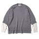 使いやすいサイズ感でシャツとのレイヤードにも対応できるボックスニットプルオーバー。腕まくりするように上の袖をくしゅっとさせる着方がオススメです。また、サイドにカラーステッチが垂れているディティールがアクセントとなっています。