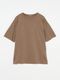 リサイクル糸を使用していますが、繊維が長い糸を使用する事で、通常のリサイクル糸では作れないほどの超ハイゲージに編み上げました。仕上げに微起毛をかけソフトに仕上げたので、肌触りが非常に滑らか。極薄な素材を活かし、体が泳ぐようなたっぷりした身幅を採用。体が入ることで布が落ち、ドレープが出て動きのある軽やかなデザインに。暑い夏にサラッと1枚で着られるT-シャツです。