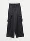 ポリエステルのフィラメントを使用した、光沢感のあるサテンを使用。本来は固くゴワゴワしたカーゴパンツを、滑らかでドレープのある生地で作る事でファションとして昇華させたアイテムです。