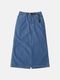 しっかりした質感でハリコシのある、環境配慮エココットンを使用した11オンスデニムのマキシレングススカート。ホワイトステッチでフレッシュな印象です。5pocketデザインでAラインシルエット、深めのスリットで足運びも問題ありません。