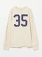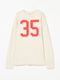 ヴィンテージのように毛羽立たせ、別注の無撚糸天竺を使用し柔らかな風合いに仕上げました。35番のプリントが特徴的な、オーバーサイズロングTeeシャツ。